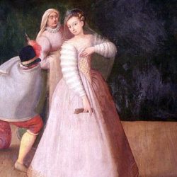 “No one pays attention to anything but the plays, nor do you hear anything among the people but the words: ‘I am of Flaminia’s party’ and ‘I am of Vincenza’s,’ and both houses fill up with parties of friends,” wrote poet Antonio Ceruto in a letter in July 1566. Vincenza Armani and “Flaminia” of Rome (most likely her stage name) both led theatre troupes, and both astonished the crowds with lavish spectacle, lively improvisation, and stories of honorable young women in love.